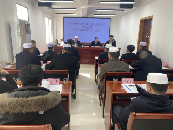 省伊协会长桂希江向理事会报告了全省伊斯兰教界“学、守、重、树”教育活动第一阶段的工作情况和2025年省伊协各项工作情况,分析了取得的成效与存在的不足,对下一步重点工作进行了安排部署。各地伊协负责人结合本地实际,总结交流各地方伊协开展教育活动第一阶段情况,探讨了下一步工作思路。会议审议并通过了《贵州省伊斯兰教协会2025年度工作报告》《贵州省伊斯兰教协会2026年工作要点》等,其间省伊协领导班子成员进行2025年度工作述职,并对其进行了民主测评。